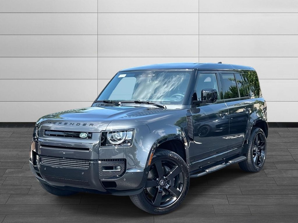 2025 Defender in CARPATHIAN GREY with Ebony Windsor interior. Features: premium upgrade interior pack ($1615), three-zone climate control ($400), air quality sensor ($100), cabin air purification plus ($375), tow hitch receiver ($700), 22 full size spare wheel ($200), clear sight interior rear view mirror ($570), 22 style 5098 5 spoke gloss black ($200), head-up display ($1,000), gloss black signature graphic ($200), extended black exterior pack ($1,310), cross car beam in dark grey powder coat brushed finish ($200), black wheel protection pack ($575), black fixed side steps ($1,900), premium interior protection and storage pack 5 seat ($720), emergency pack ($75), All incentives have been applied to pricing as a cash purchase. Leasing and special finance incentives will vary.