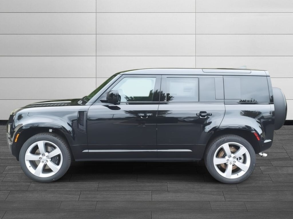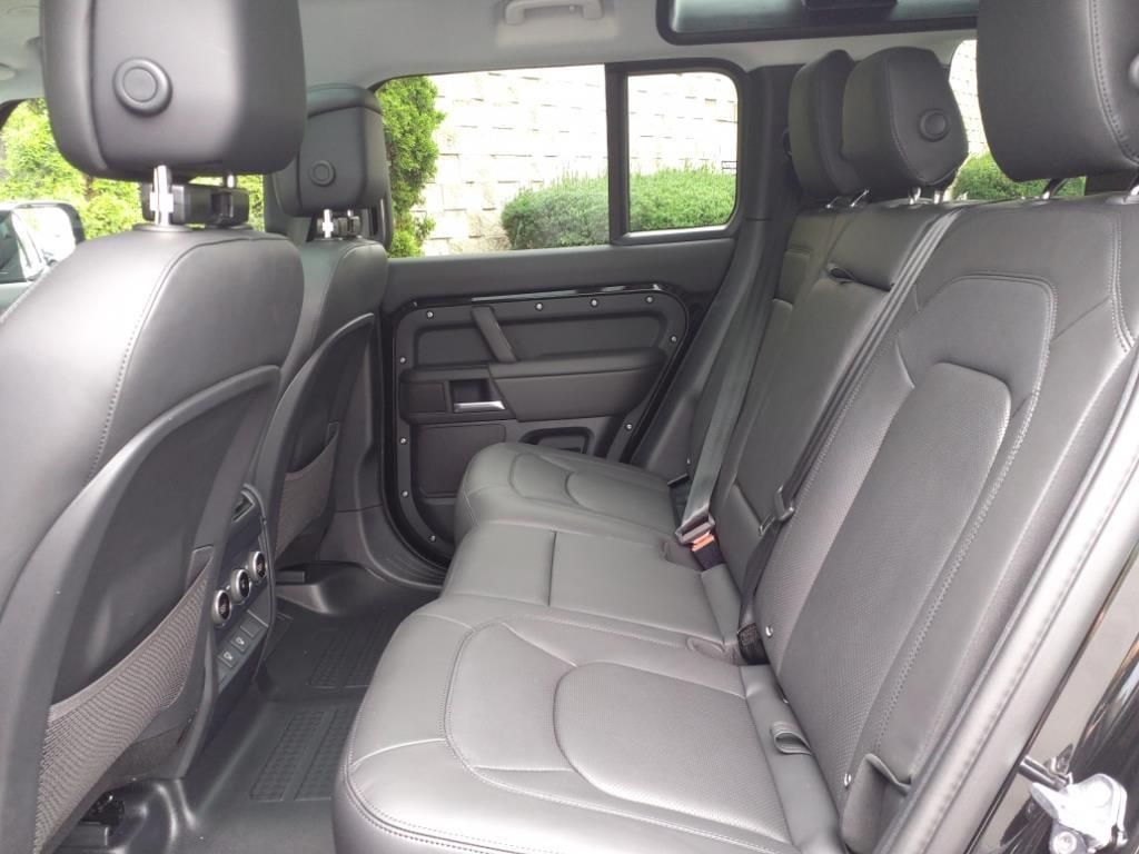 2025 Defender in SANTORINI BLACK with Ebony Windsor leather interior. Features: premium upgrade interior pack ($1,615), three-zone climate control with rear cooling assist ($1,100), air quality sensor ($100), cabin air purification plus ($375), tow hitch receiver ($700), 22 full size spare wheel ($200), 22 style 5098 5 spoke gloss sparkle silver ($2,200), body-colored spare wheel cover ($400), wheel protection and storage pack 5 seat ($720), hand over pack ($28), rear seat convenience pack ($265), emergency pack ($75), All incentives have been applied to pricing as a cash purchase. Leasing and special finance incentives will vary.